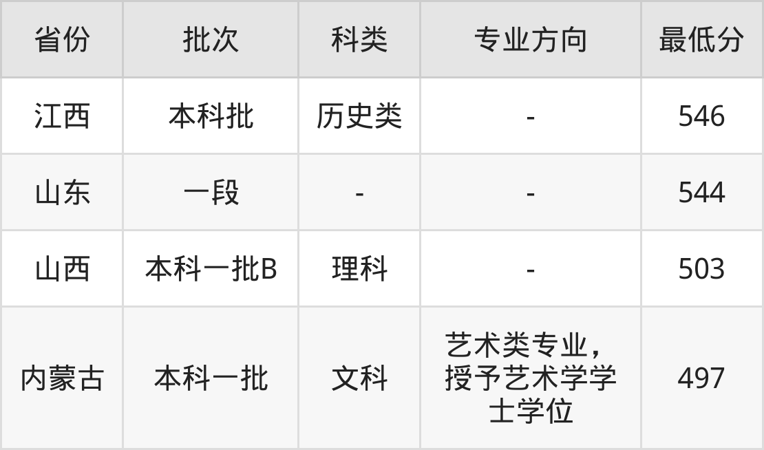 文科497分(艺术类专业,授予艺术学学士学位、位次5343名);