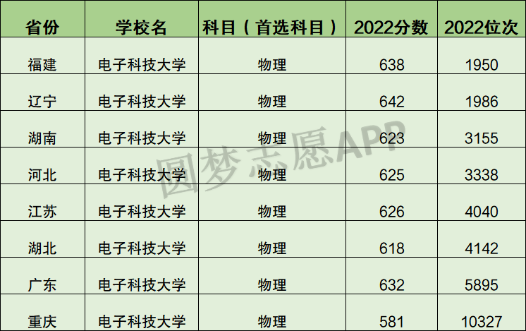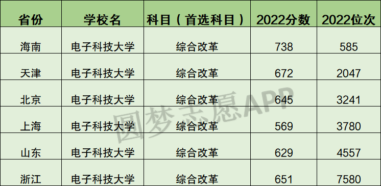 以下为2022年电子科技大学全国各地录取分数线及位次,以供参考。