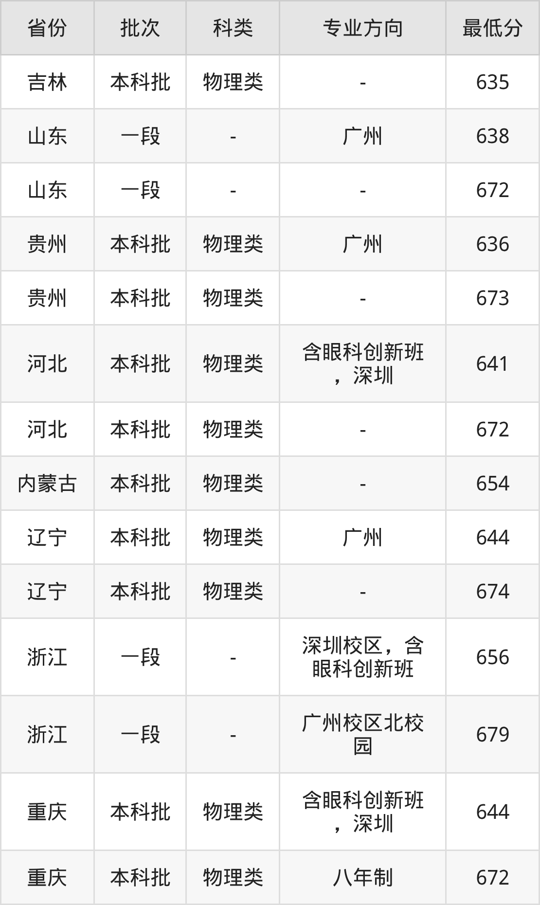 656分(深圳校区,含眼科创新班、位次8295名),679分(广州校区北校园、位次1695名);