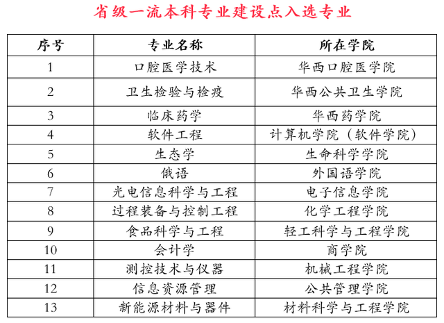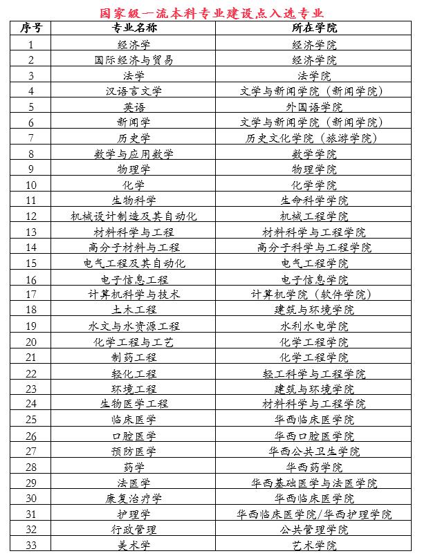 根据教育部“双万计划”的最新消息可知,四川大学一共有33个专业被评选为国家级一流本科专业,具体名单如下: