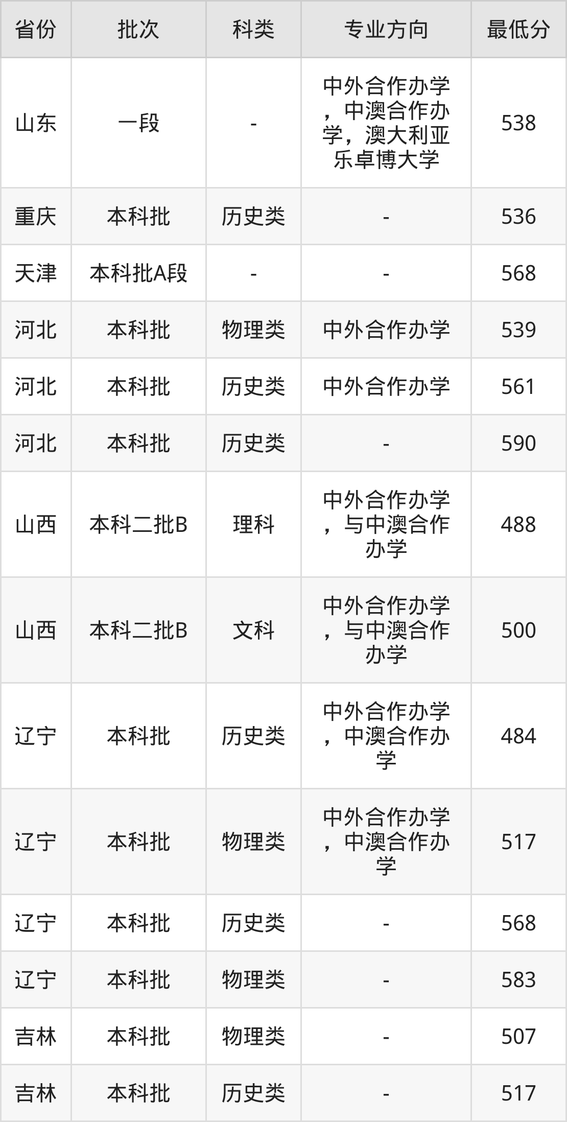 | 本科批 | 历史类 | 中外合作办学 ,中澳合作办 学 | 484 | 13865 |