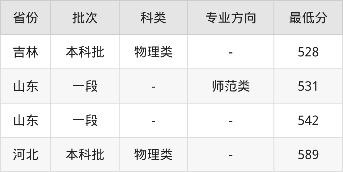 | 批次 | 专业方向 | 最低分 | 位次 |