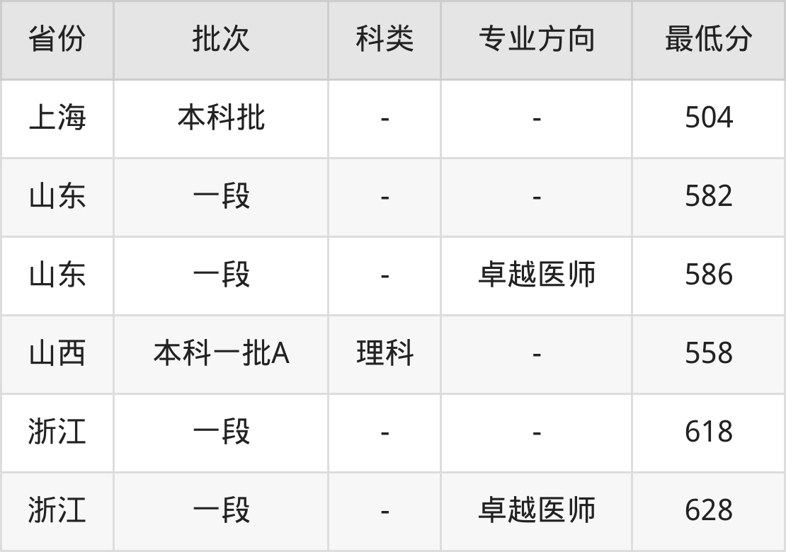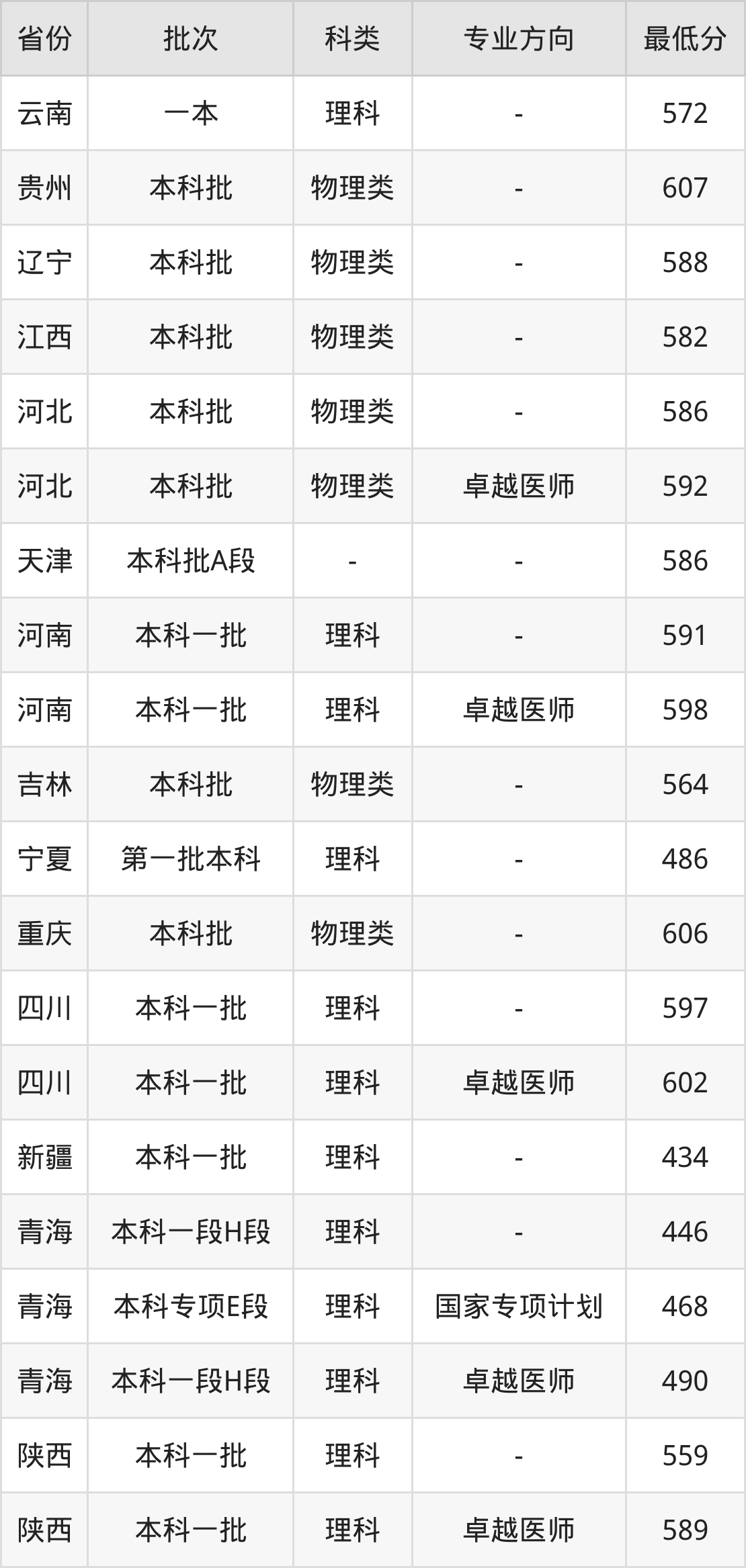 | 本科一段H段 | 理科 | 卓越医师 | 490 | 2328 |