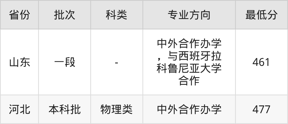 461分(中外合作办学,与西班牙拉科鲁尼亚大学合作、位次283649名);