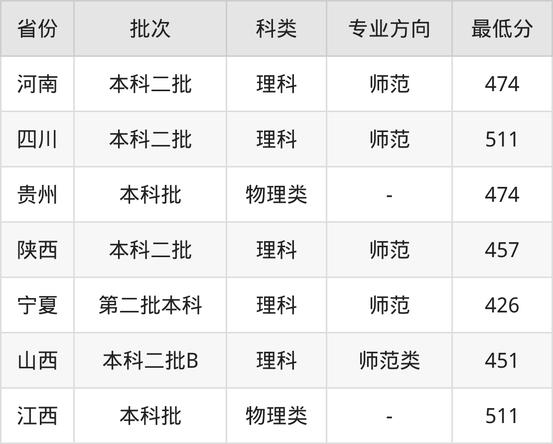 | 物理+化学 | 甘肃、江西、湖北、广 西、贵州 |