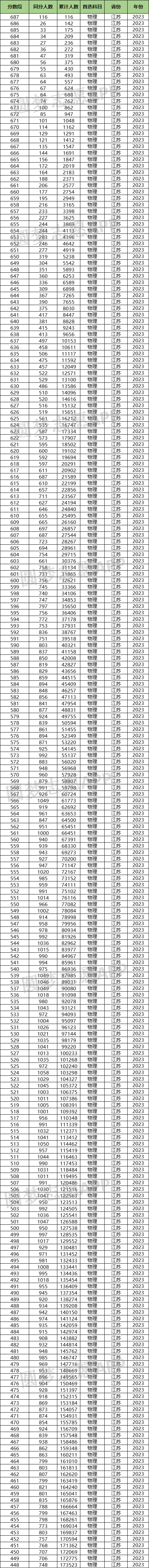 下表为2023年江苏物理类一分一段表