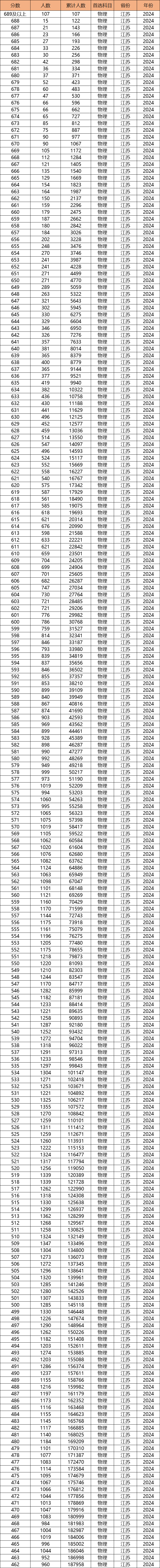 江苏高考批次线已经公布,以下是2024年江苏高考物理批次线、一分一段表。