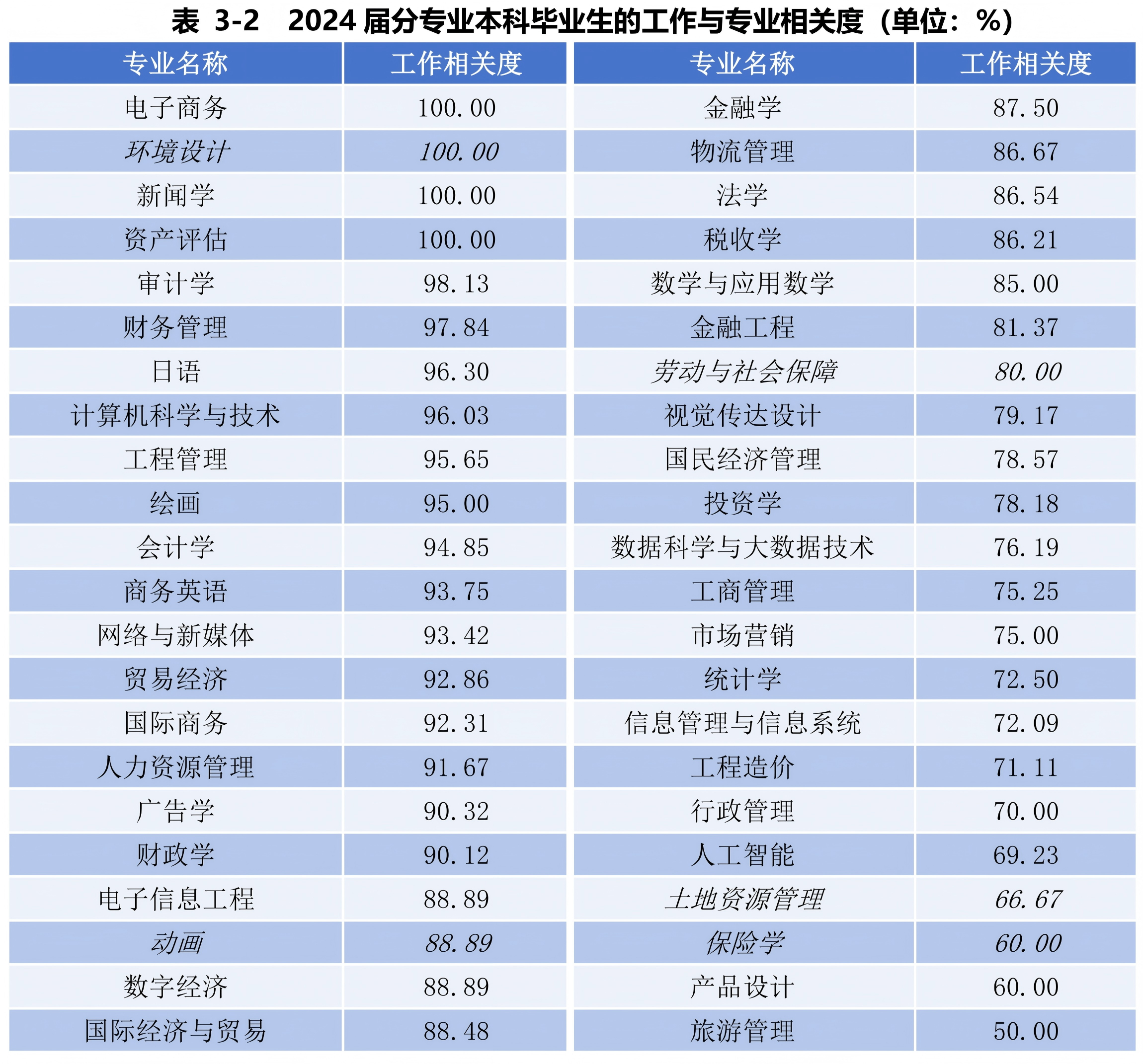 这些专业的工作与专业相关度达到100%,说明专业培养和市场需求匹配度极高,适合想“学啥做啥”的学生: