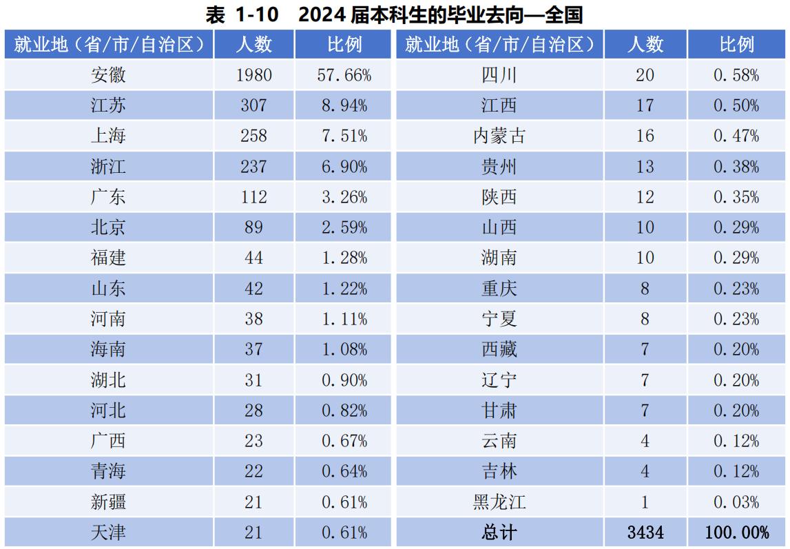 二、就业解析:扎根安徽、辐射长三角,稳定岗位是主流