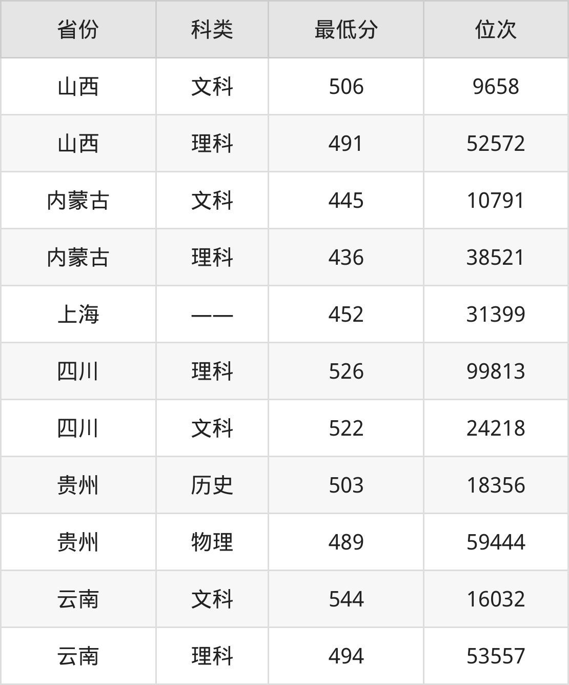2024年上海商学院日语专业在云南录取最低分:文科是544分,对应位次排名是16032名;理科是494分,对应位次排名是53557名。