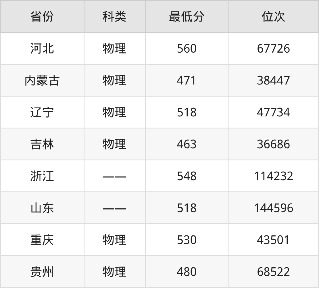 2025年吉林农业大学机械类专业在贵州录取最低分:480分,对应位次排名是68522名。