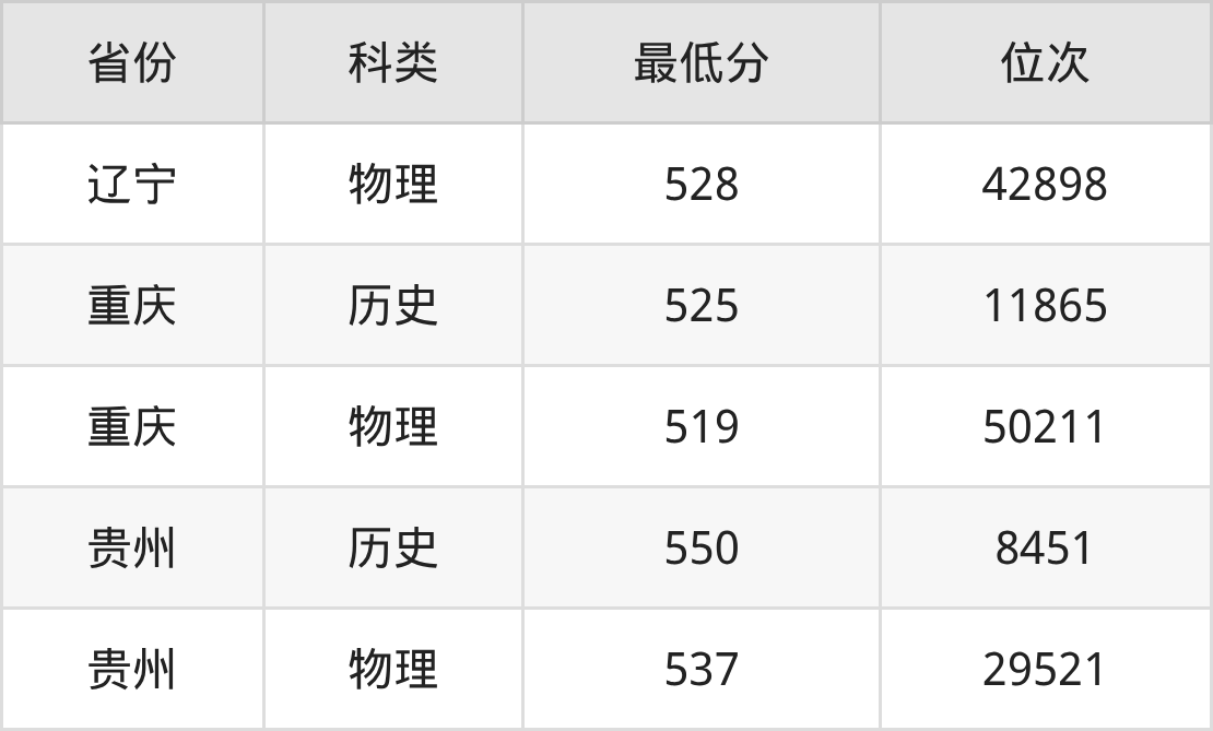 2025年重庆工商大学物流管理专业在贵州录取最低分:历史组是550分,对应位次排名是8451名;物理组是537分,对应位次排名是29521名。