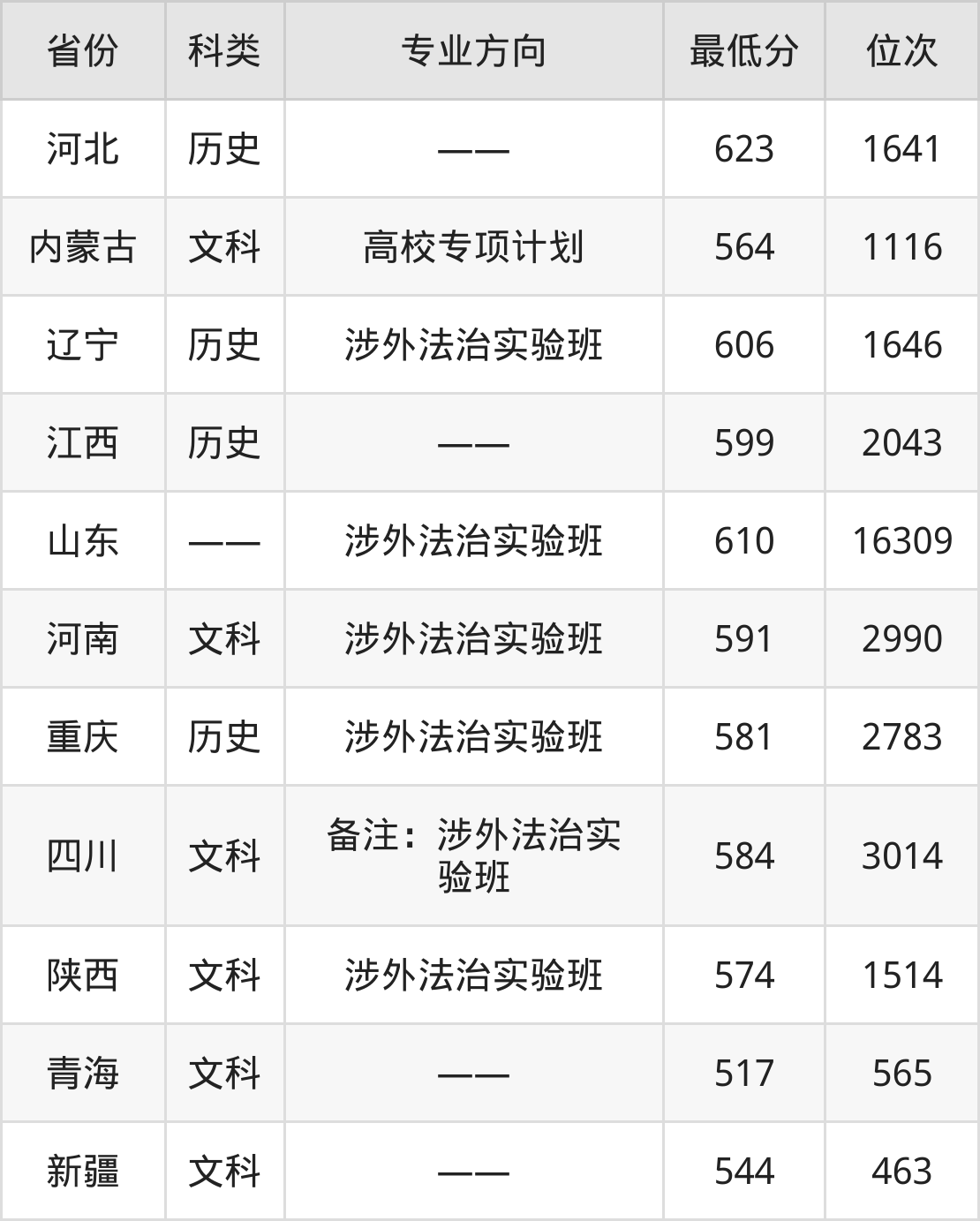 下面是2024年西北大学法学专业录取分数线一览表: