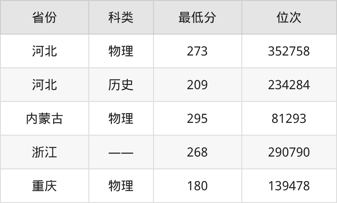 2025年四川应用技术职业学院计算机应用技术专业在河北录取最低分:物理组是273分,对应位次排名是352758名;历史组是209分,对应位次排名是234284名。