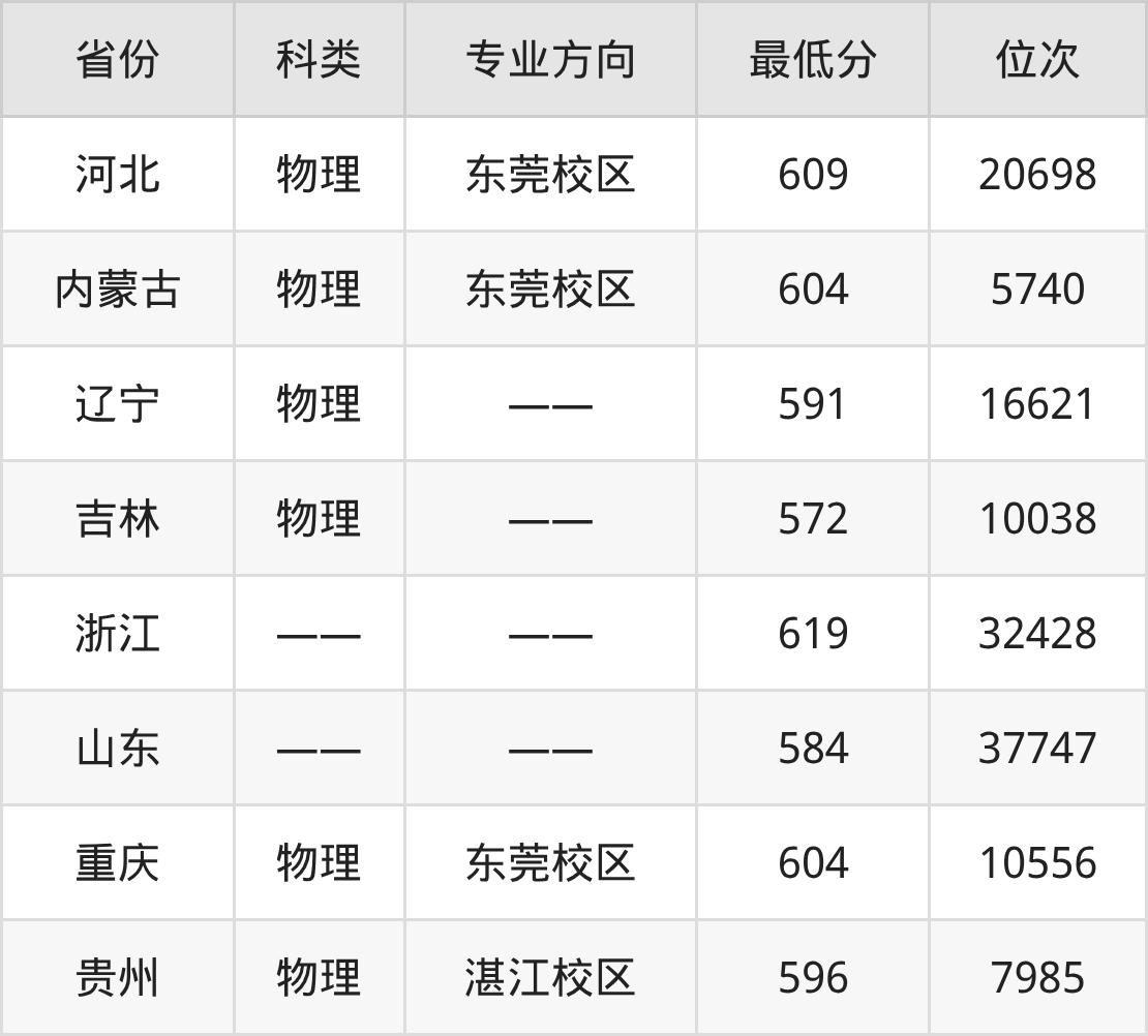 2025年广东医科大学临床医学专业在重庆录取最低分:604分,对应位次排名是10556名。