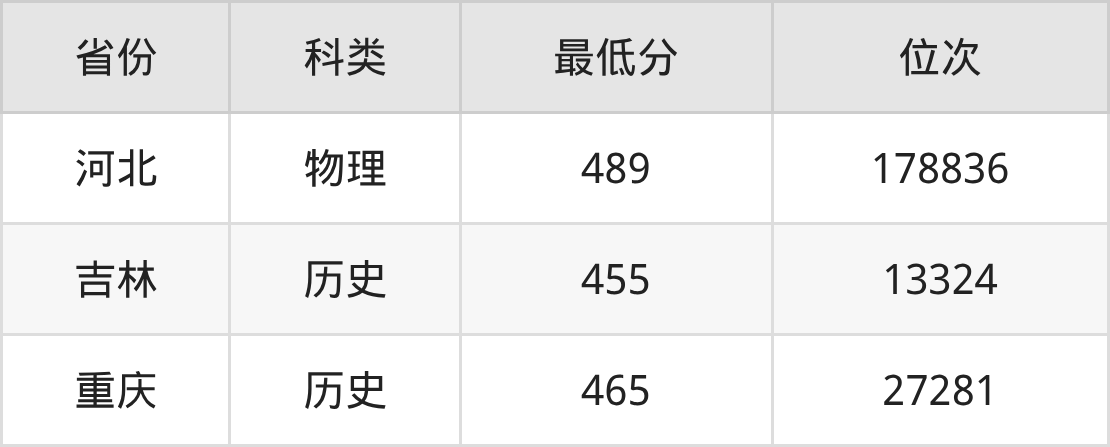| 省份 | 首选 科目 | 招生名额 |