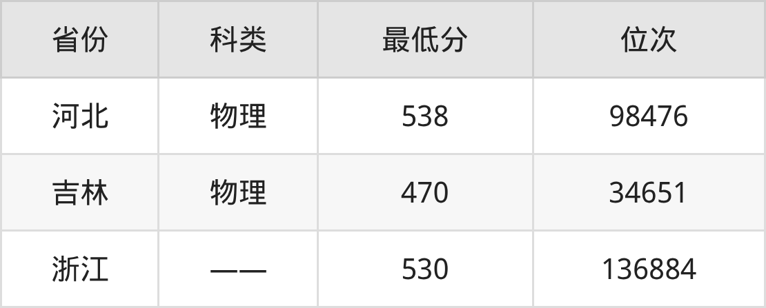 | 省份 | 首选 科目 | 招生名额 |