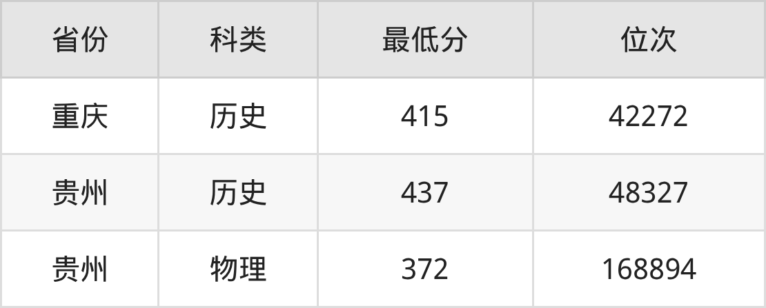 2025年四川职业技术学院智慧健康养老服务与管理专业在贵州录取最低分:历史组是437分,对应位次排名是48327名;物理组是372分,对应位次排名是168894名。