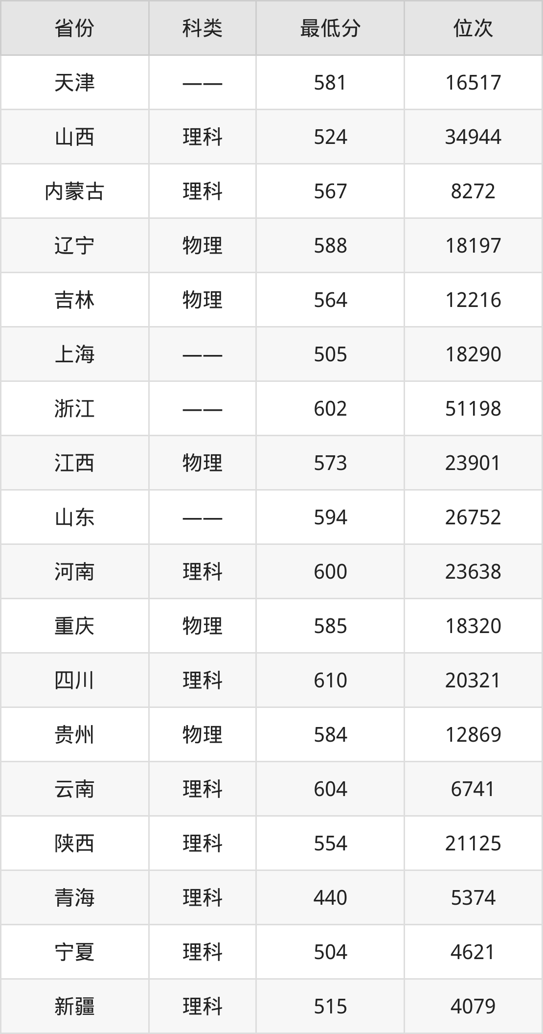 2024年重庆医科大学医学检验技术专业在天津录取最低分:581分,对应位次排名是16517名。