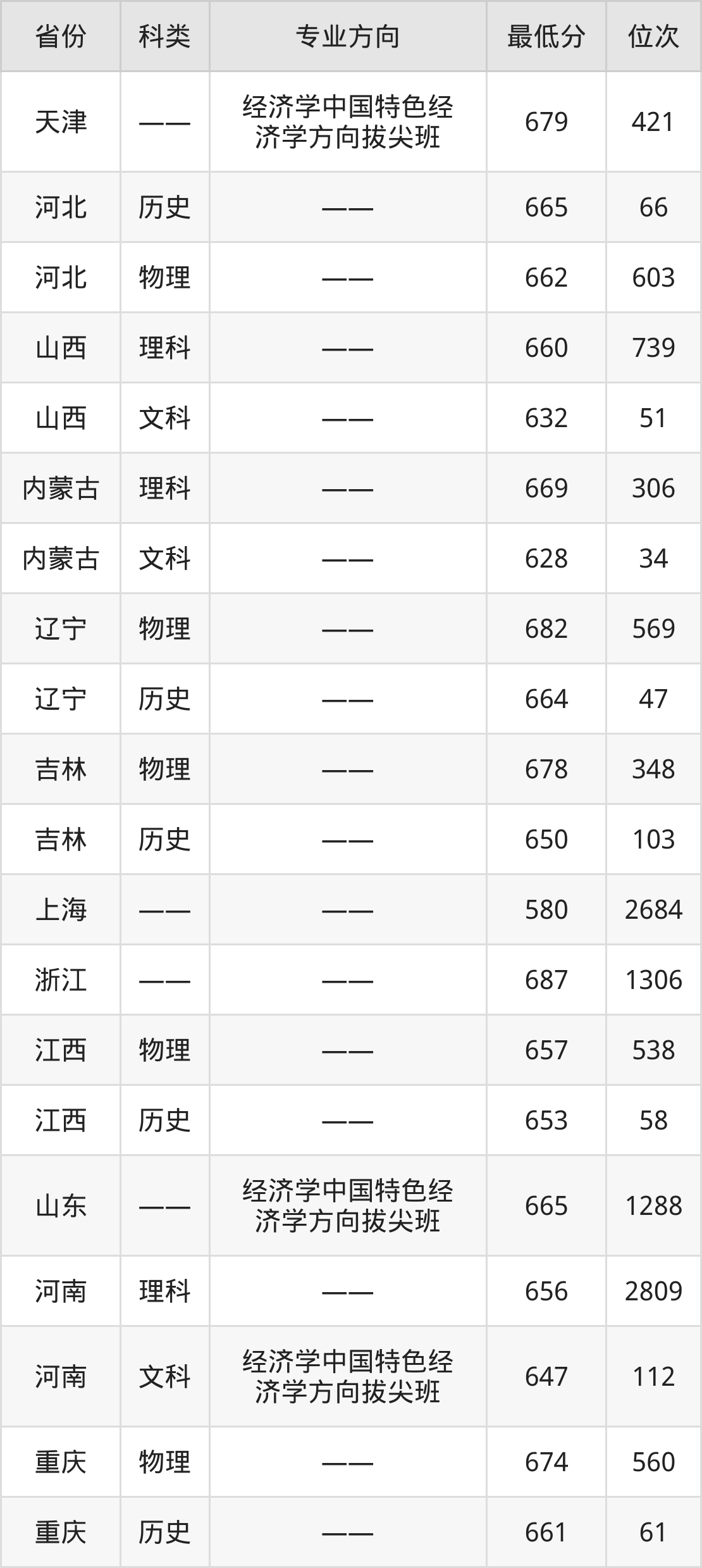 2024年中国人民大学经济学类专业在全国18个省市招生,录取最低分从580分到687分不等,下面老师为大家具体介绍。