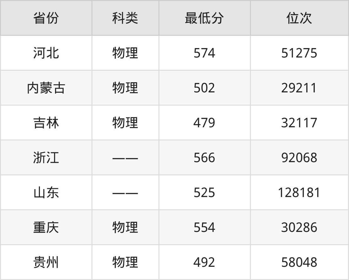| 省份 | 首选 科目 | 招生名额 |
