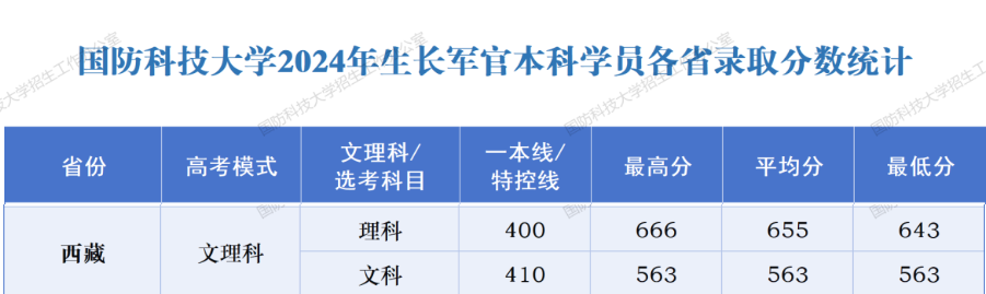 2025年西藏军校录取分数线暂未公布,以下是2024年部分院校分数线,供参考。