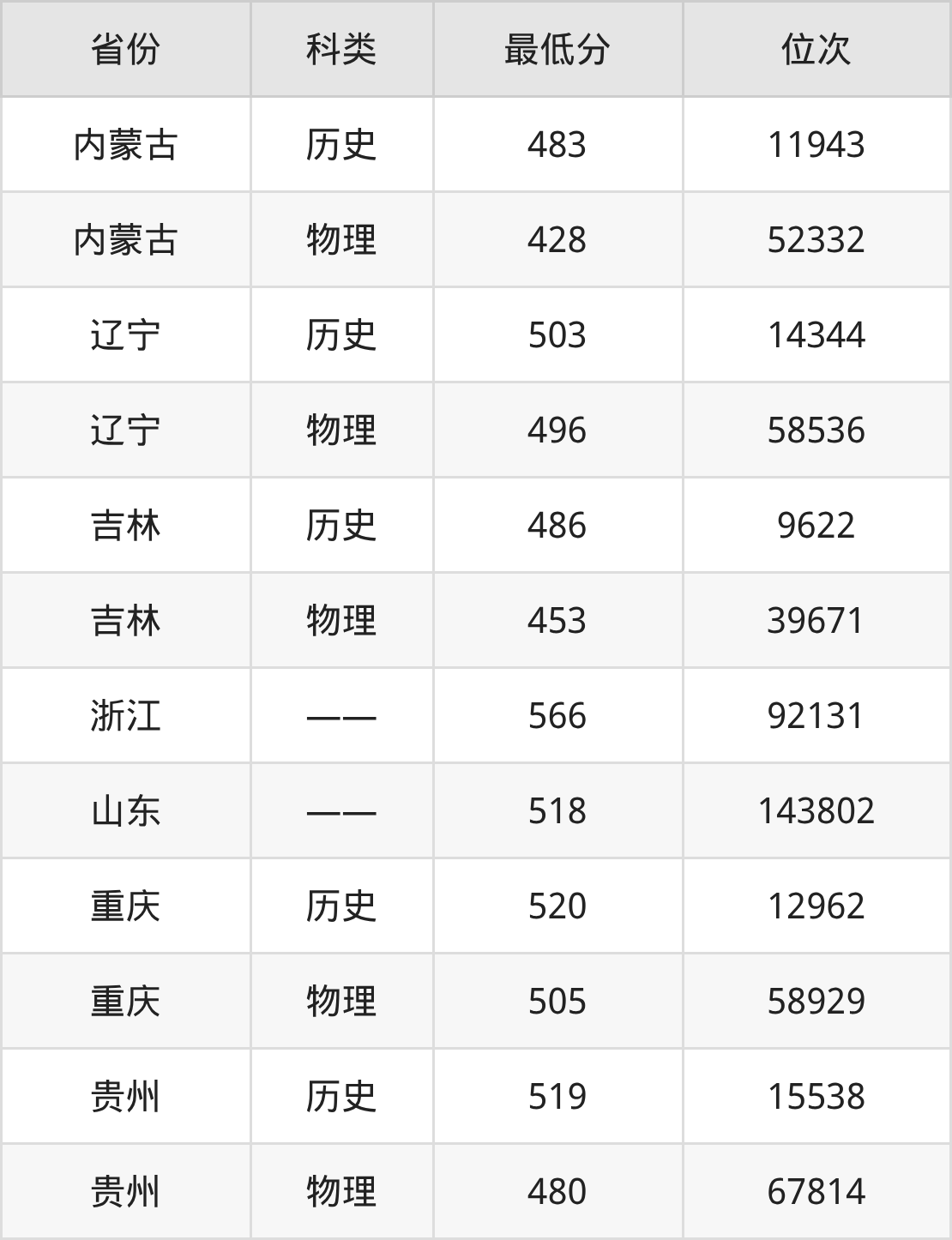 2025年陇东学院会计学专业在贵州录取最低分:历史组是519分,对应位次排名是15538名;物理组是480分,对应位次排名是67814名。