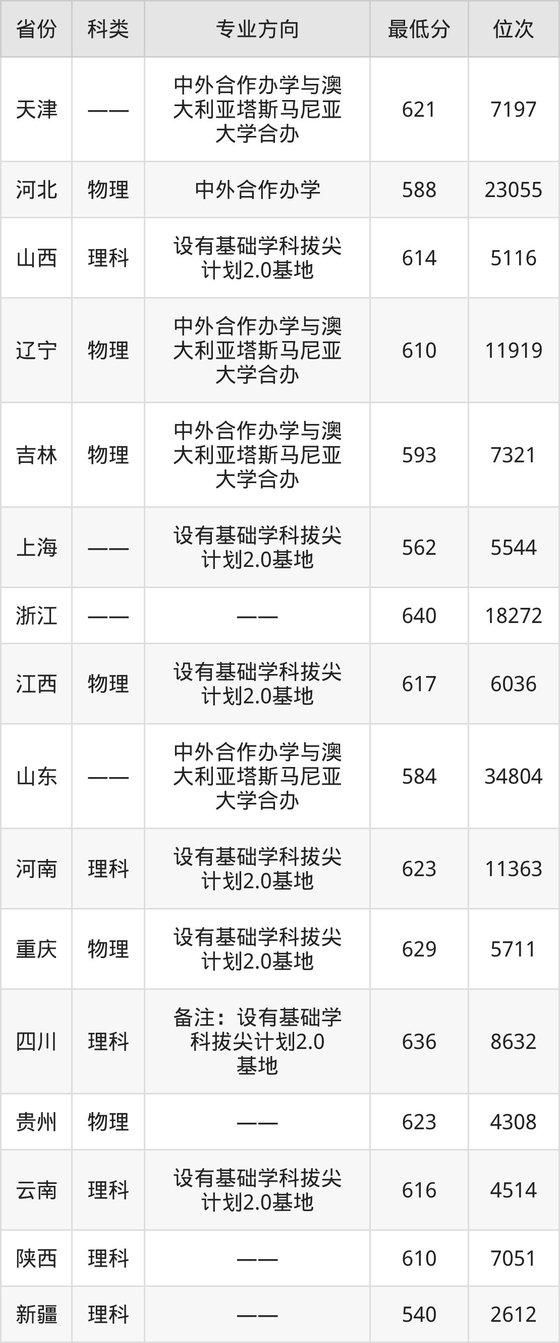 1、专业排名