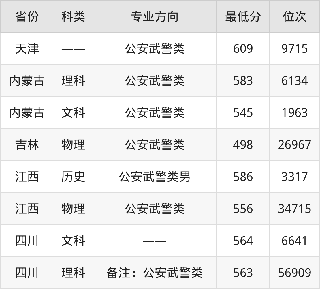 2024年西南政法大学侦查学专业在四川录取最低分:文科是564分,对应位次排名是6641名;理科是563分,对应位次排名是56909名。