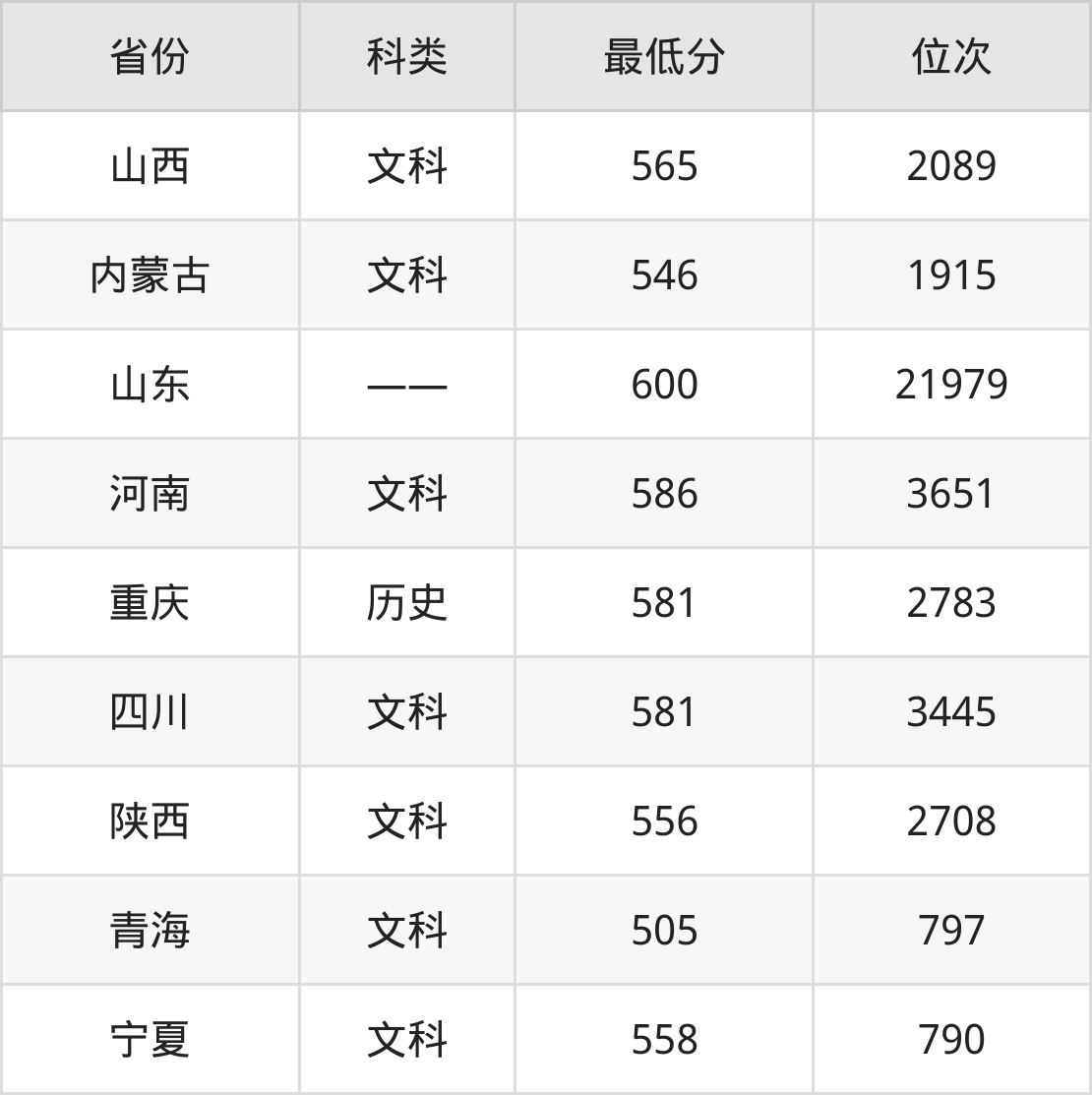 3、山东:600分