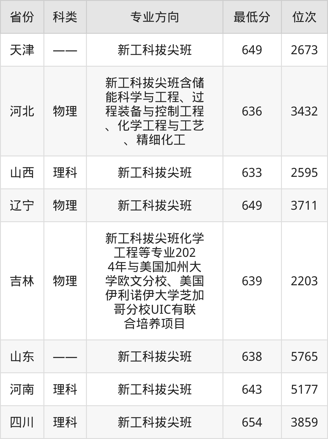 2024年大连理工大学储能科学与工程专业在全国8个省市招生,录取最低分从633分到654分不等,下面老师为大家具体介绍。