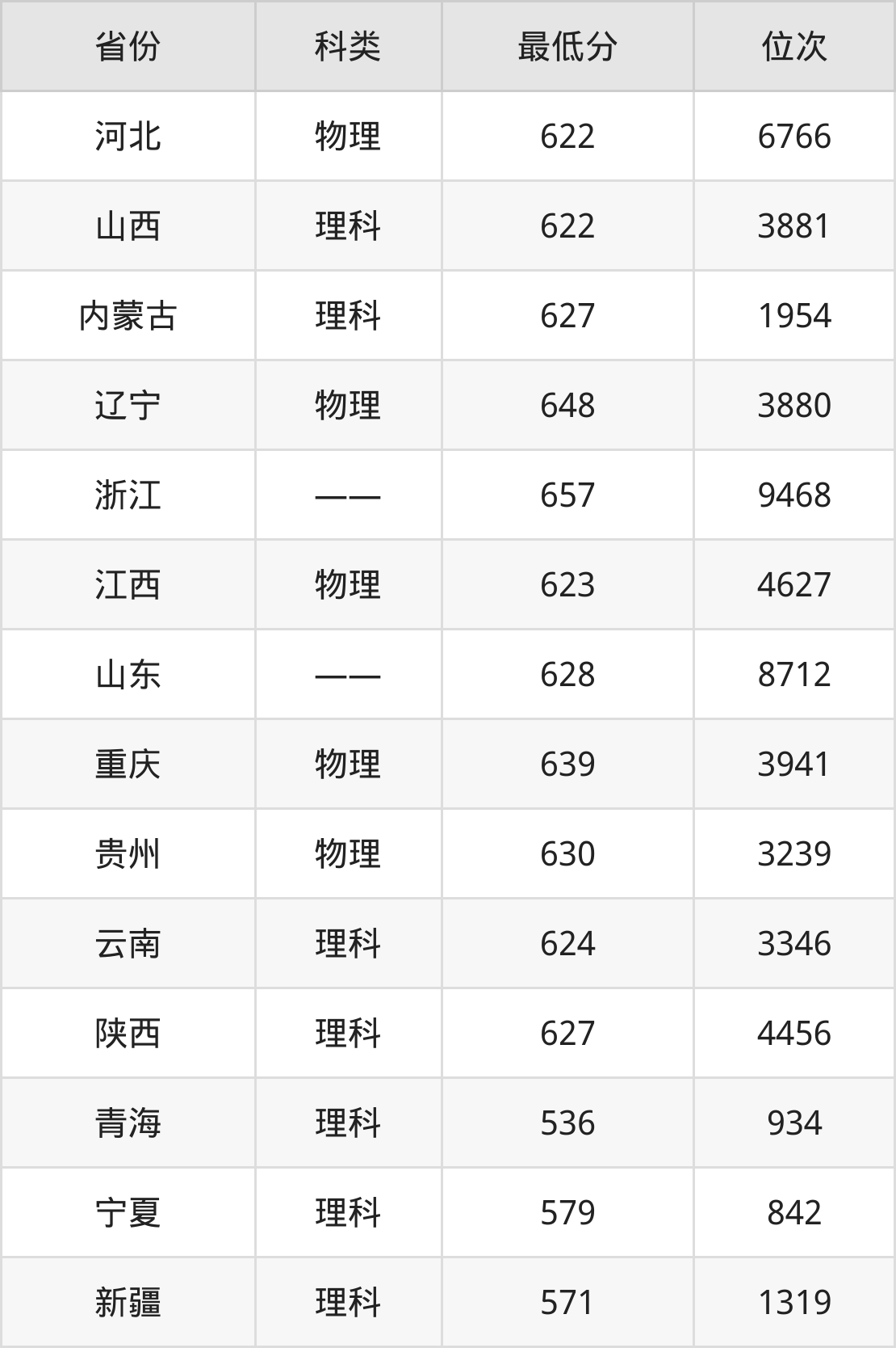 5、浙江:657分