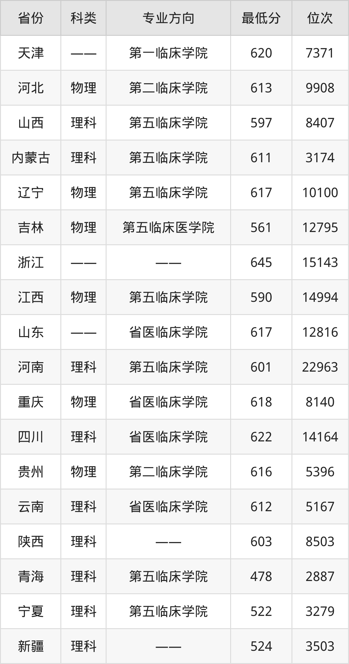 2024年郑州大学临床医学专业在浙江录取最低分:645分,对应位次排名是15143名。