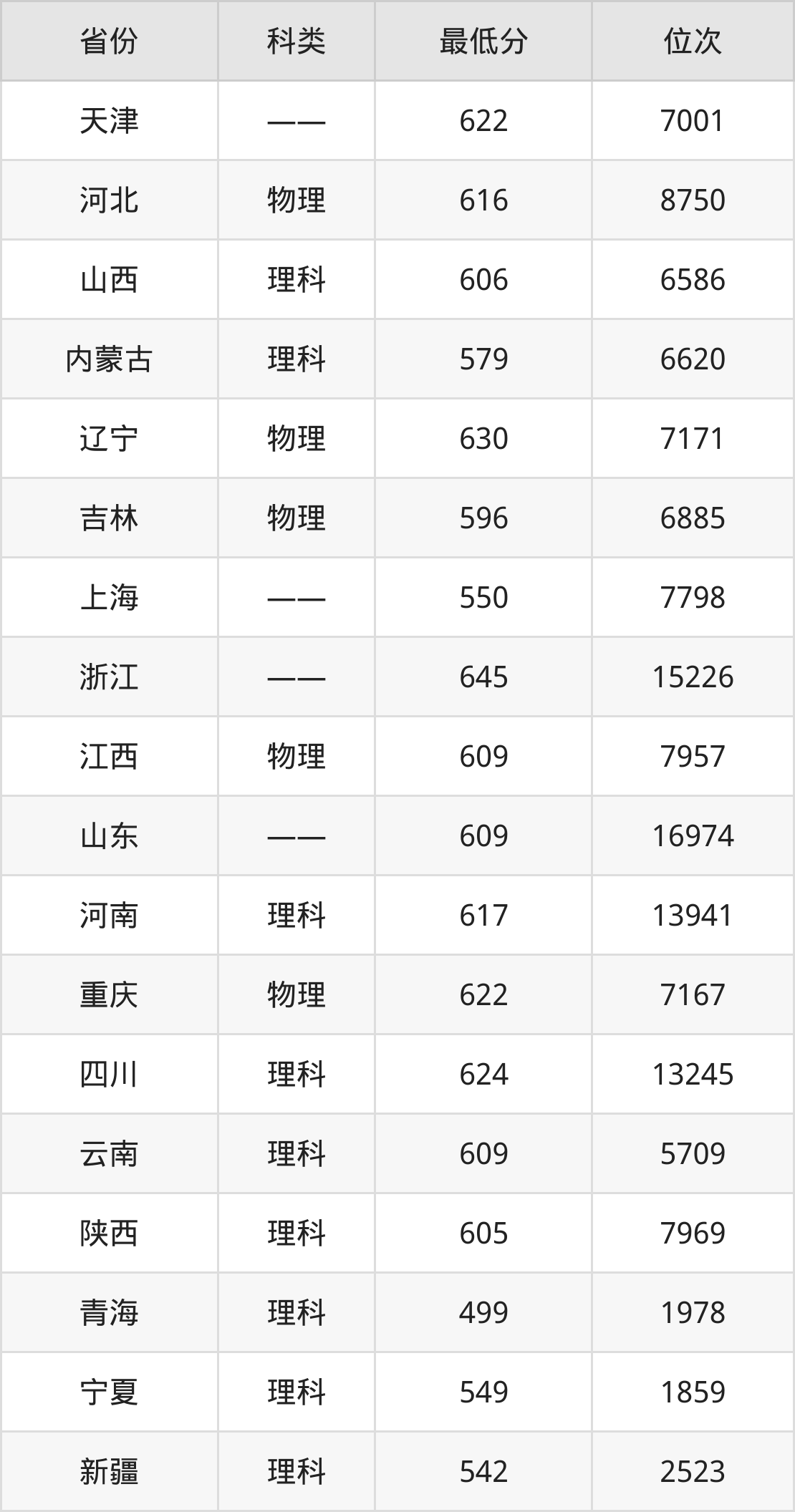 10、山东:609分