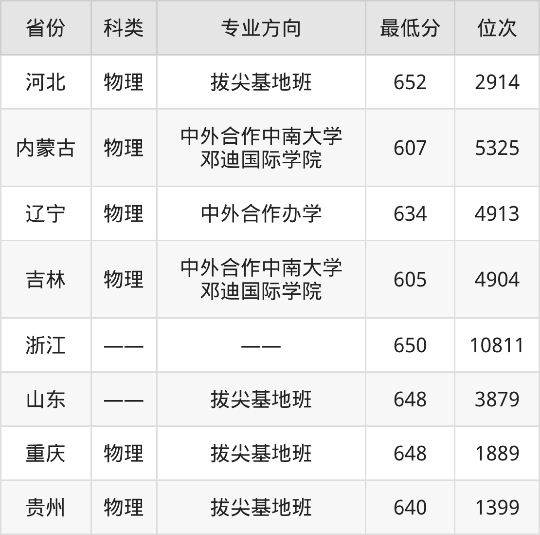 2025年中南大学计算机科学与技术专业在浙江录取最低分:650分,对应位次排名是10811名。