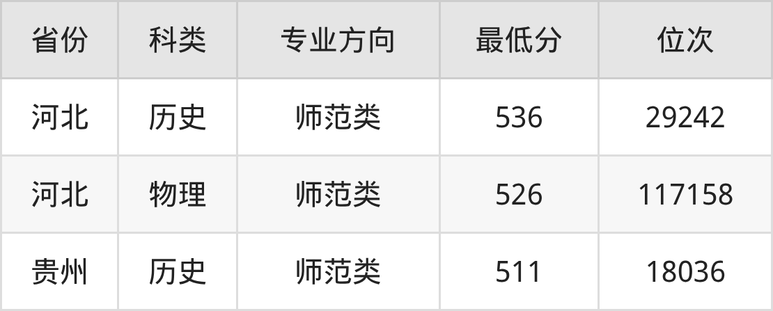 2025年邯郸学院小学教育专业在河北录取最低分:历史组是536分,对应位次排名是29242名;物理组是526分,对应位次排名是117158名。