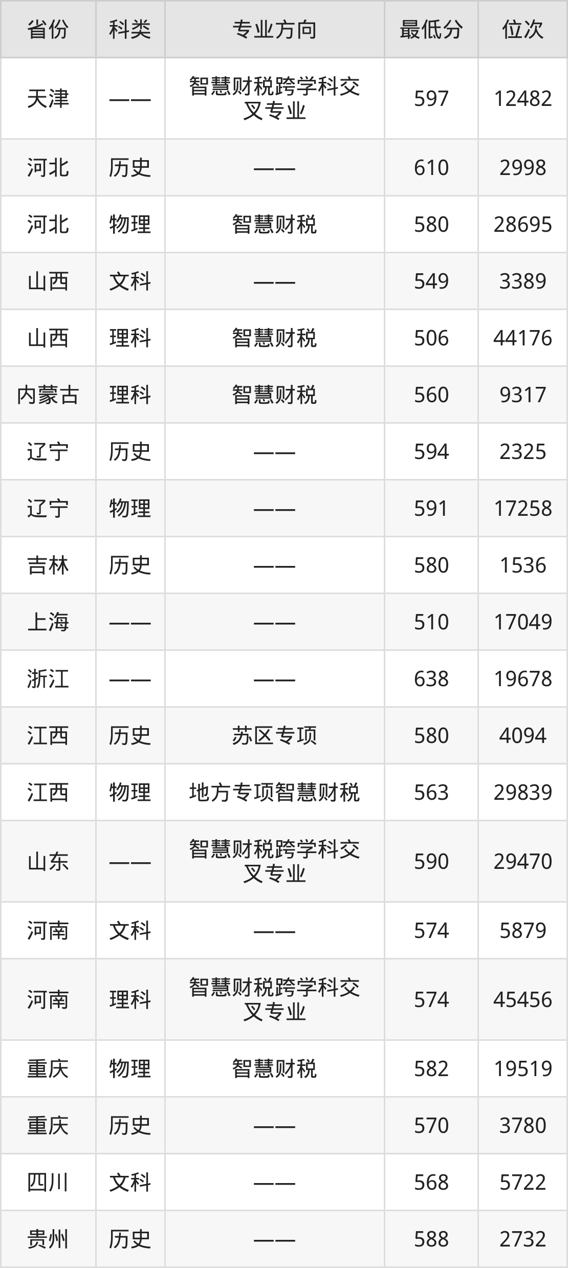 2024年江西财经大学财政学专业在山西录取最低分:文科是549分,对应位次排名是3389名;理科是506分,对应位次排名是44176名。
