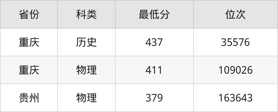 2025年四川卫生康复职业学院康复治疗技术专业在重庆录取最低分:历史组是437分,对应位次排名是35576名;物理组是411分,对应位次排名是109026名。