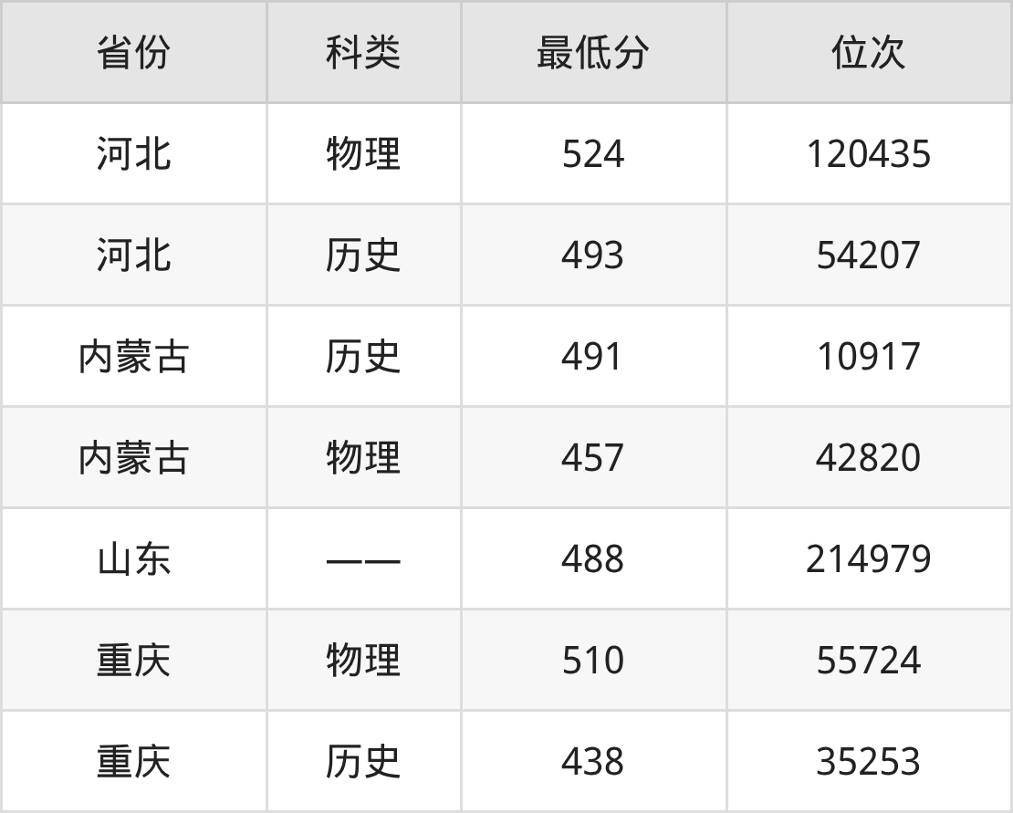 2025年陇东学院护理学专业在河北录取最低分:物理组是524分,对应位次排名是120435名;历史组是493分,对应位次排名是54207名。