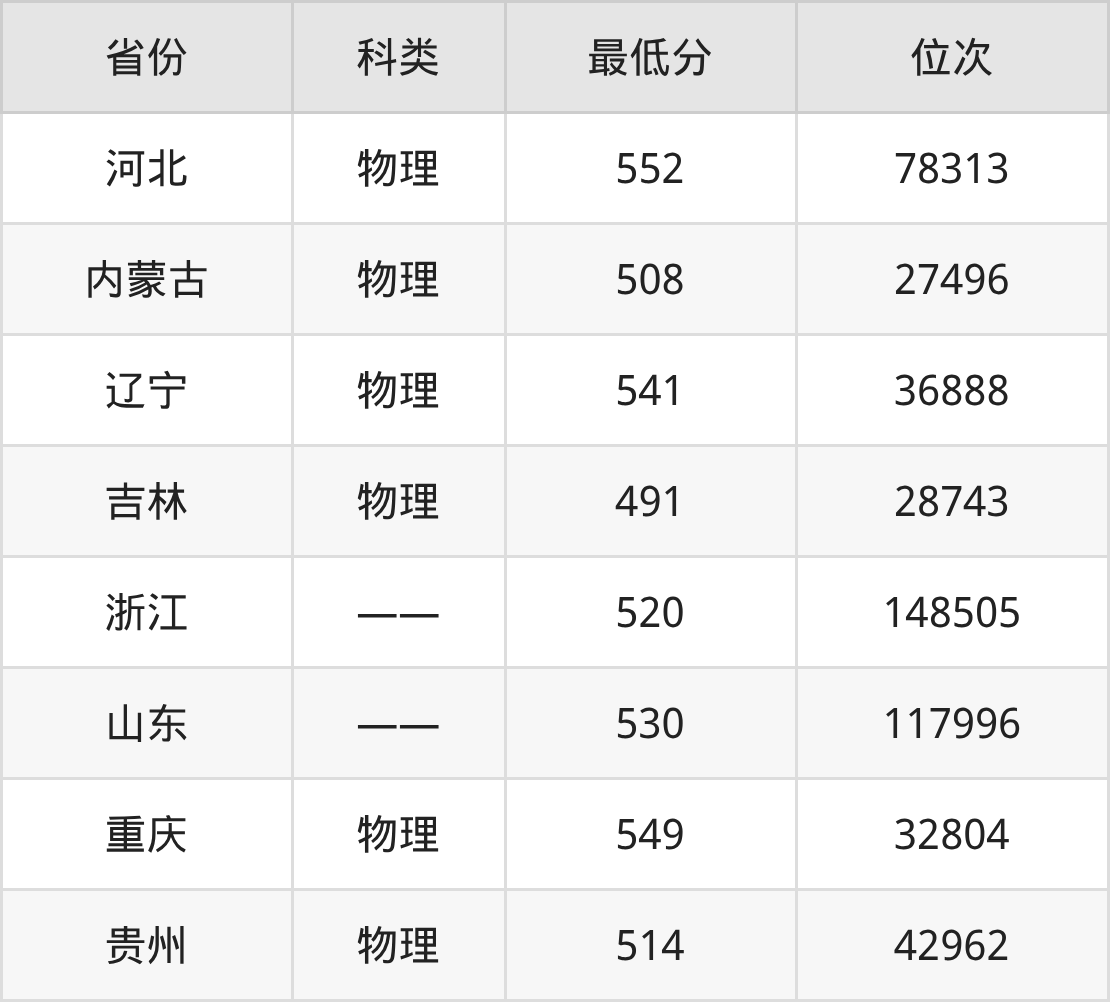 | 省份 | 首选 科目 | 招生名额 |