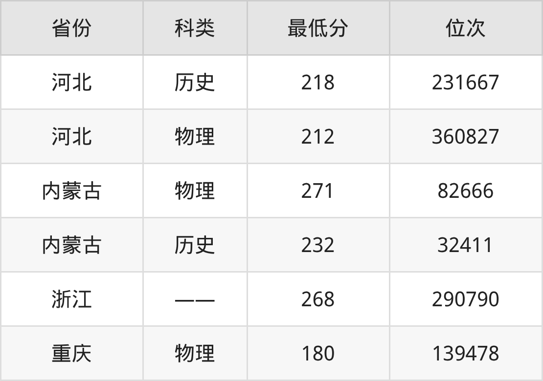 2025年四川应用技术职业学院大数据与会计专业在内蒙古录取最低分:物理组是271分,对应位次排名是82666名;历史组是232分,对应位次排名是32411名。