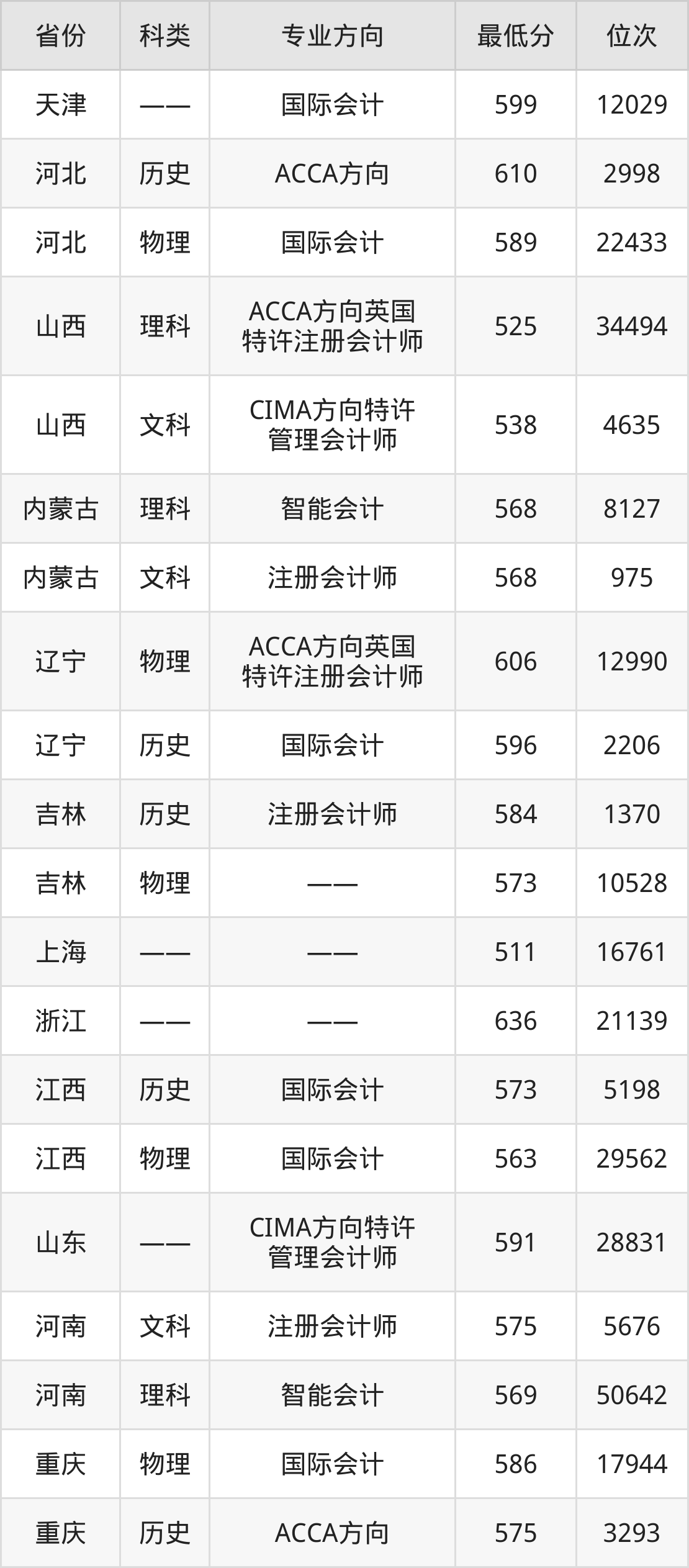 下面是2024年江西财经大学会计学专业录取分数线一览表: