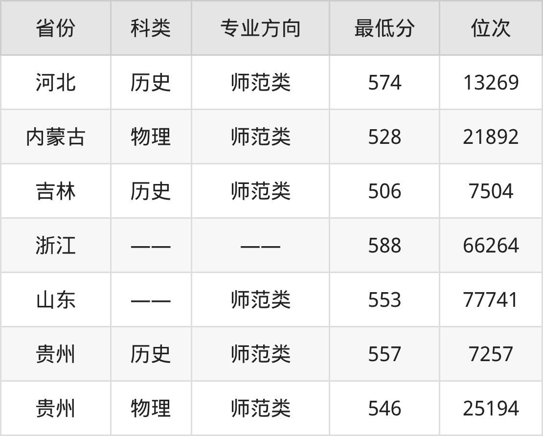 2025年广西师范大学英语专业在贵州录取最低分:历史组是557分,对应位次排名是7257名;物理组是546分,对应位次排名是25194名。