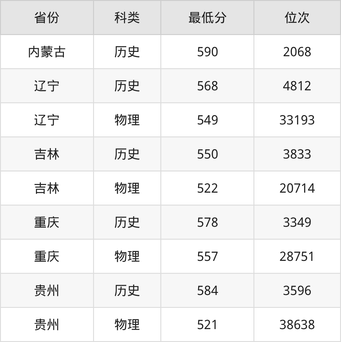 2025年河南中医药大学针灸推拿学专业在贵州录取最低分:历史组是584分,对应位次排名是3596名;物理组是521分,对应位次排名是38638名。