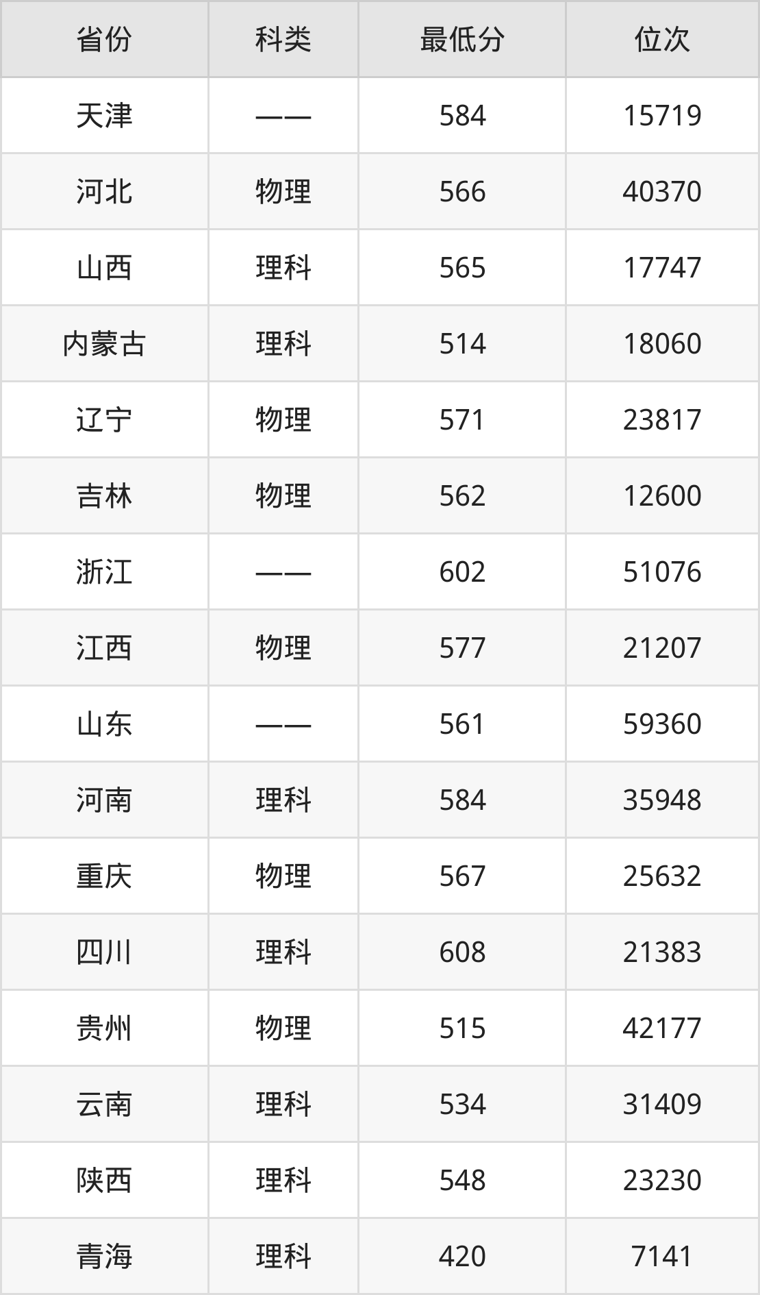 2024年贵州大学土木类专业在天津录取最低分:584分,对应位次排名是15719名。