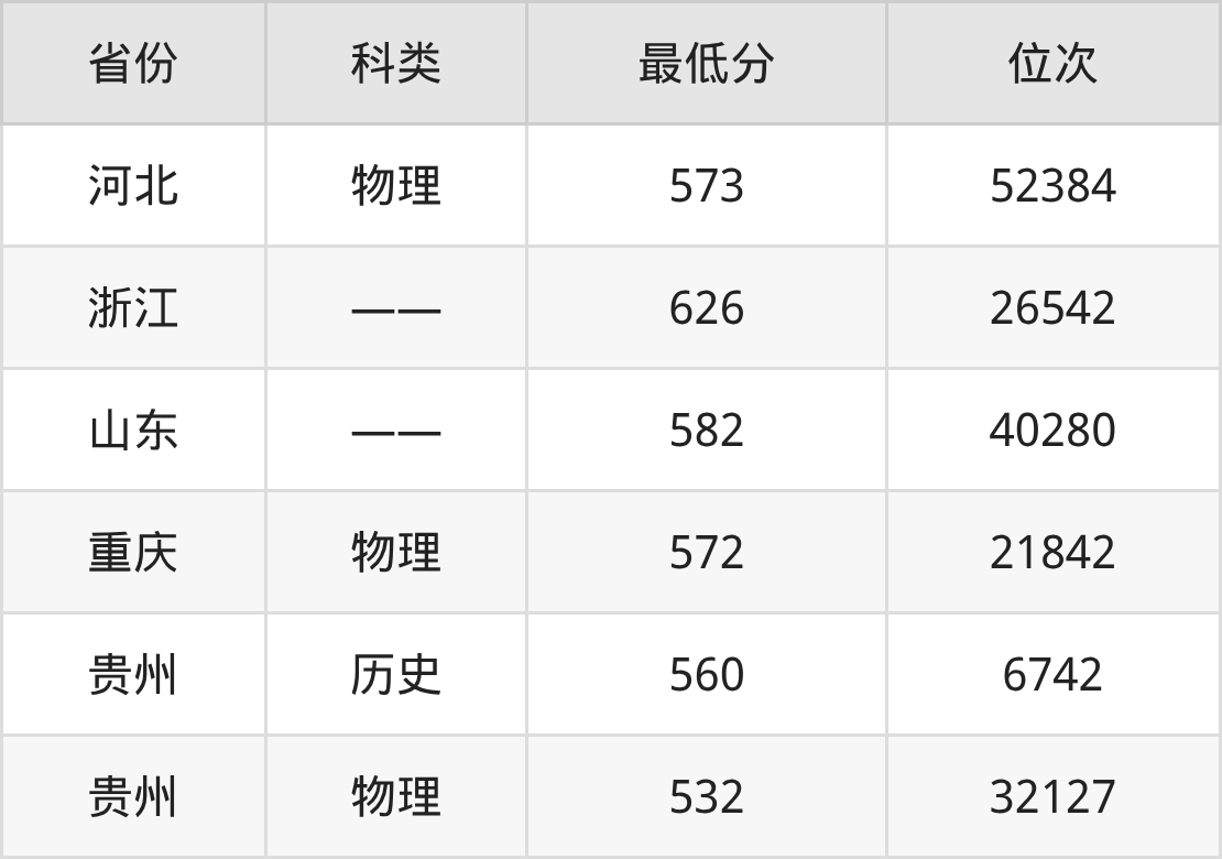 2025年福建中医药大学针灸推拿学专业在贵州录取最低分:历史组是560分,对应位次排名是6742名;物理组是532分,对应位次排名是32127名。