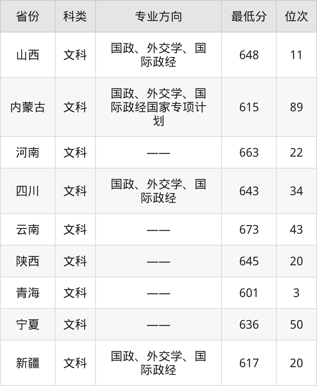 2024年北京大学国际政治专业在山西录取最低分:648分,对应位次排名是11名。