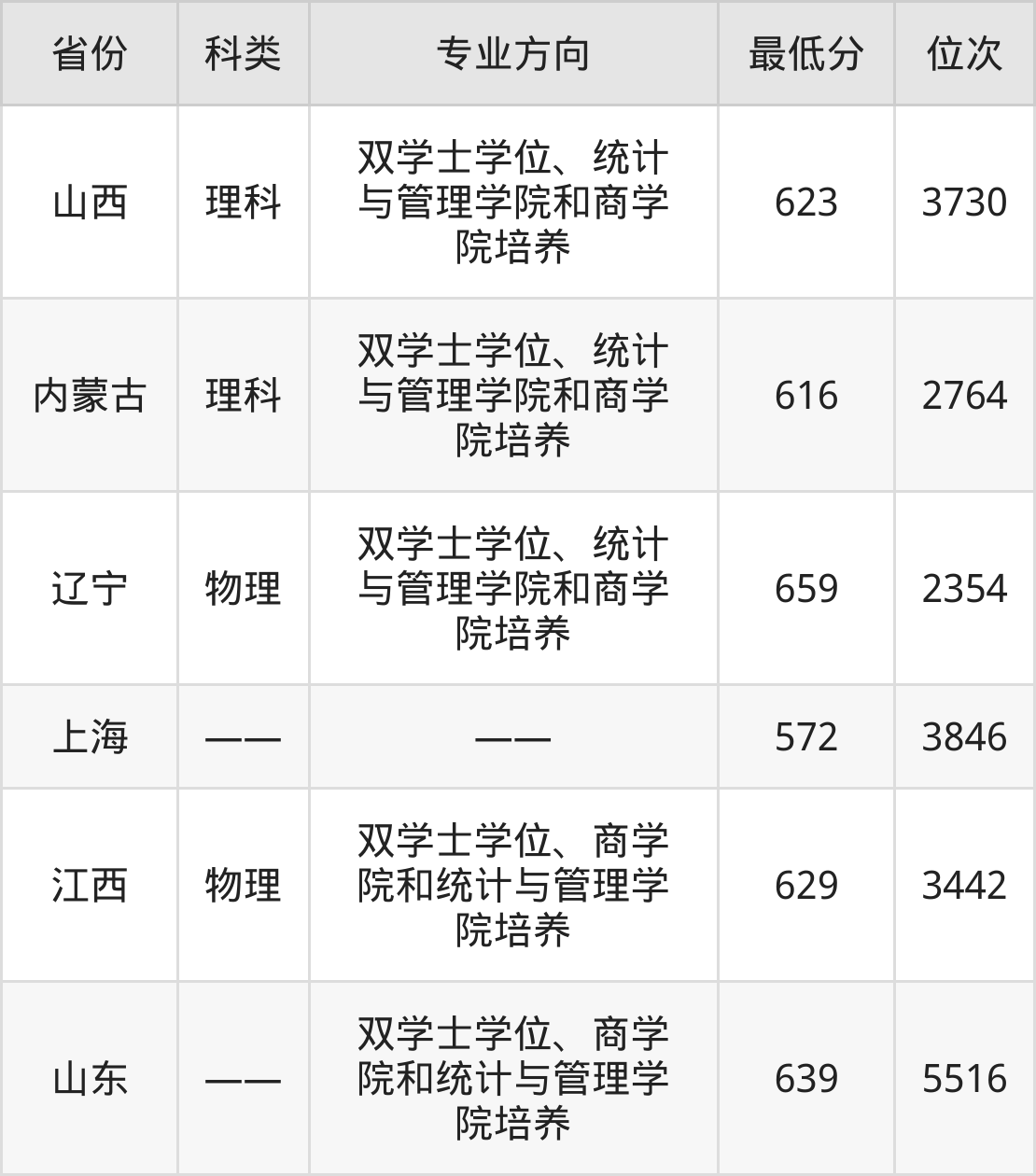 2024年上海财经大学统计学专业在山西录取最低分:623分,对应位次排名是3730名。