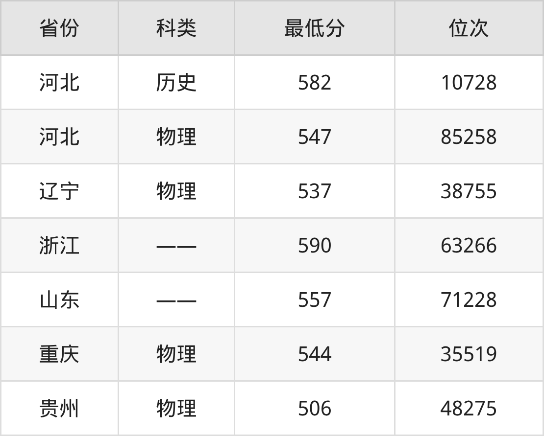 2025年黑龙江中医药大学中医康复学专业在河北录取最低分:历史组是582分,对应位次排名是10728名;物理组是547分,对应位次排名是85258名。