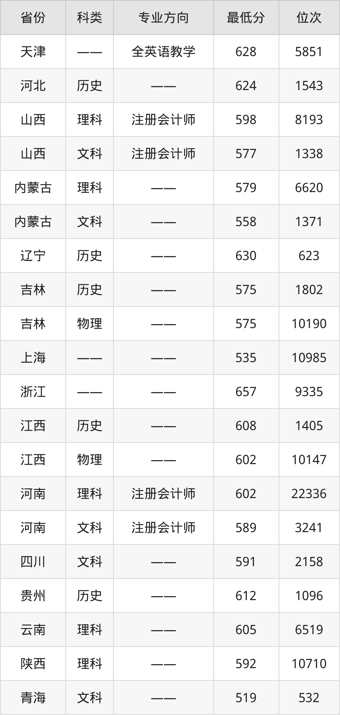 2024年暨南大学会计学专业在天津录取最低分:628分,对应位次排名是5851名。